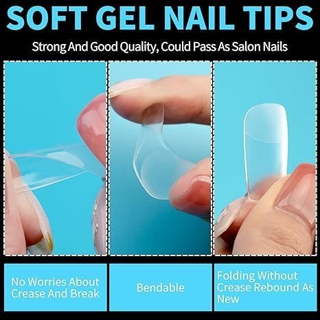 [Long Lasting] This full cover soft gelly tips kit fits your nails perfectly, from the free edge to the cuticle. With the right care, it can last up to 4 weeks