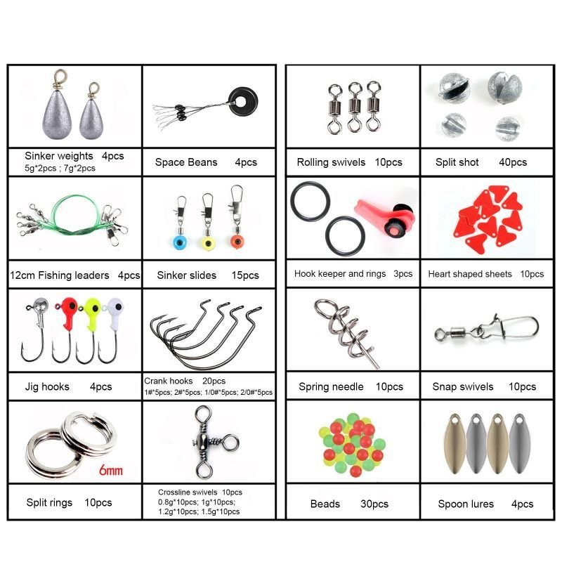 3.The kit includes the most common styles and various sizes of hooks and sinkers, making it perfect for freshwater and offshore fishing.