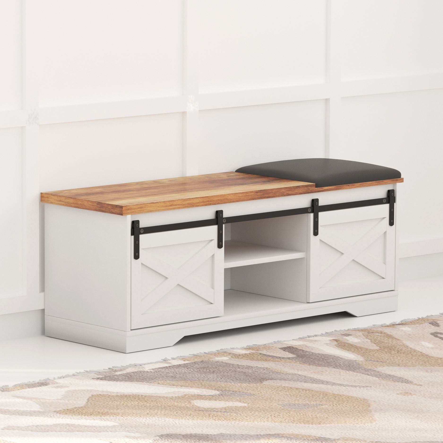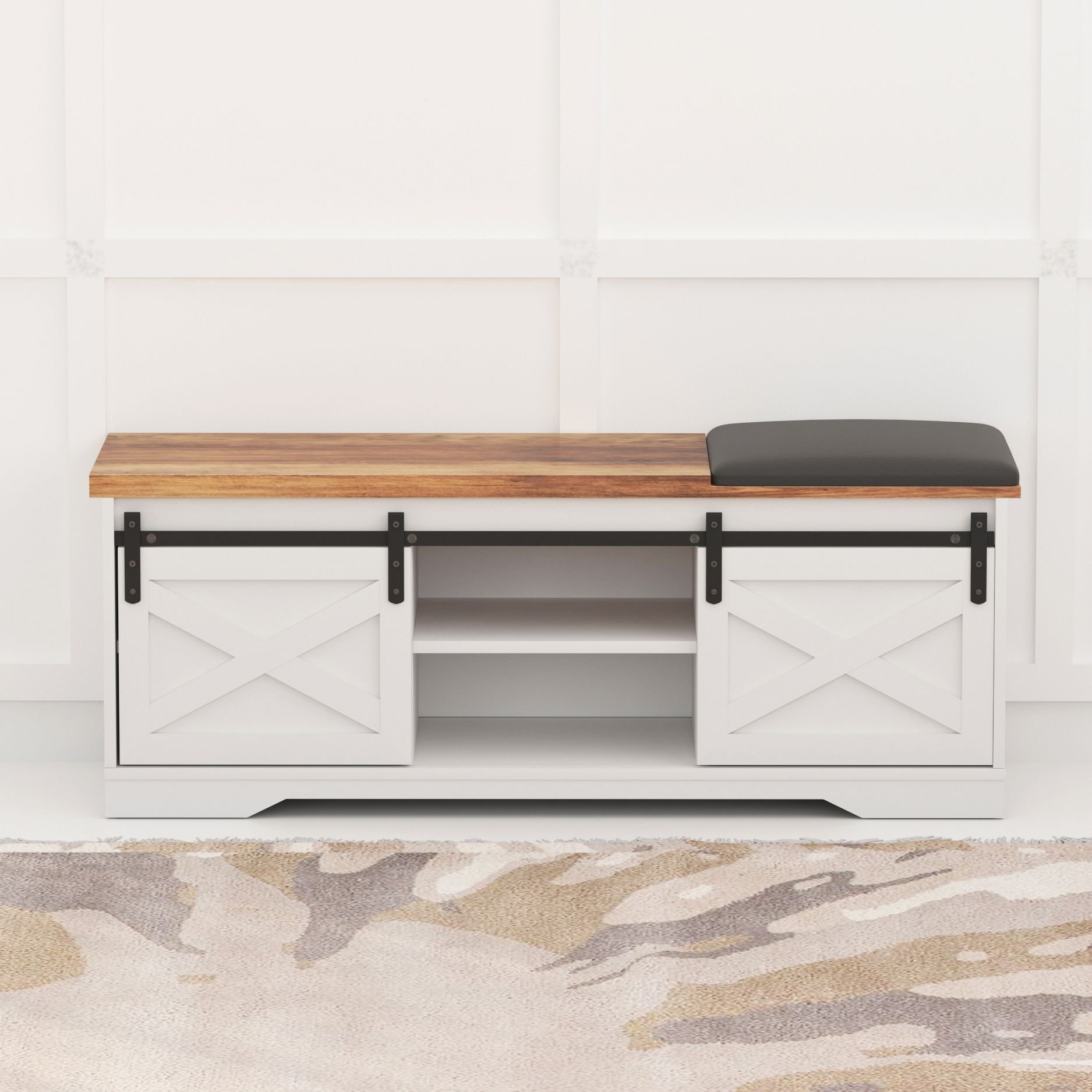 WESOME 47 Inch Modern Farmhouse Sliding X Barn Door Litterbox Bench with Entry Cutout; Shoe Bench Multi-color Option