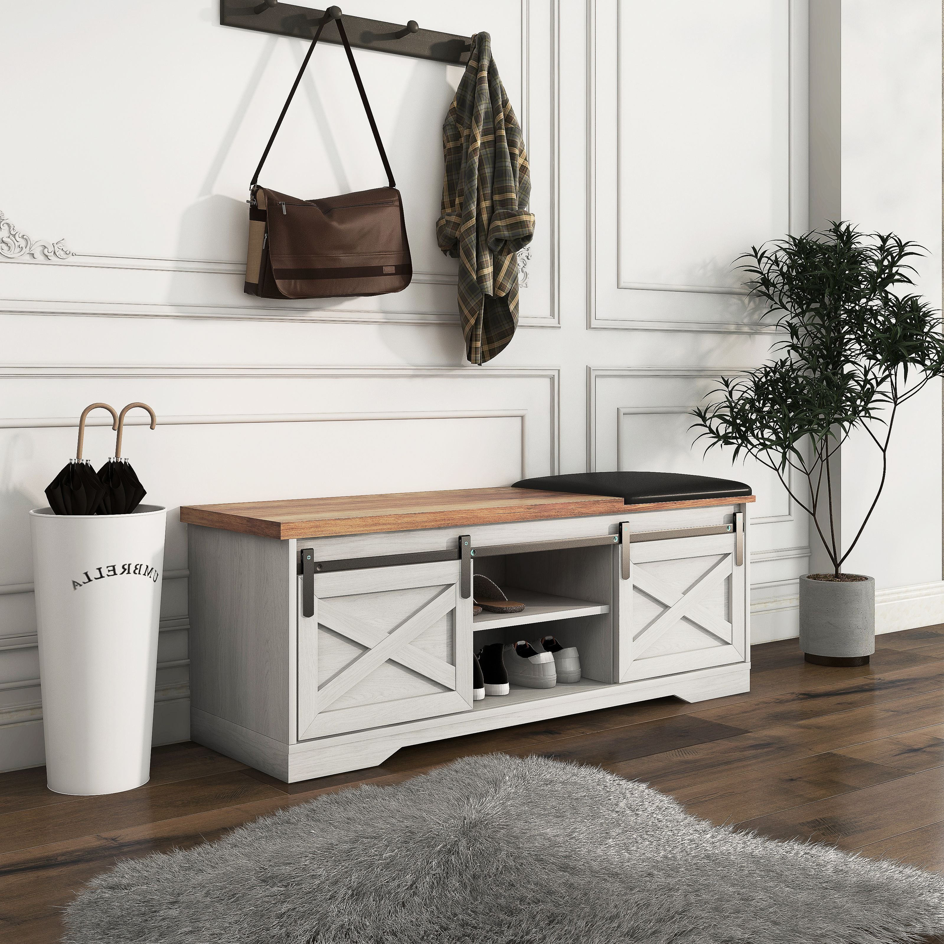 Home > WESOME 47 Inch Modern Farmhouse Sliding X Barn Door Litterbox Bench with Entry Cutout; Shoe Bench Multi-color Option